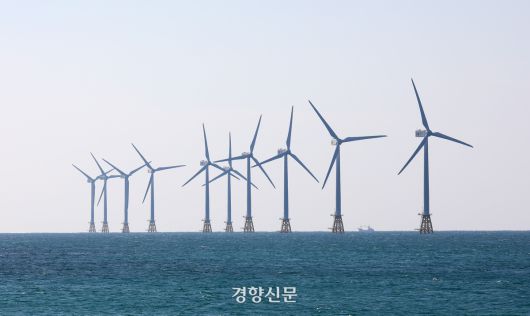 제주 한경면에 조성된 탐라해상 풍력발전단지. 강윤중 기자 |
