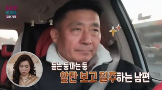 아내는 남편이 운전대를 잡는 순간부터 "죽을 각오를 하고 차에 탄다"며 극도의 불안과 공포를 호소했다. 실제 관찰 영상에서 남편은 아내의 비명 섞인 만류에도 불구하고 고속도로에서 시속 160km로 과속하는 것은 물론, 신호 위반과 졸음운전을 일삼았다. 심지어 고속도로 한복판에서 후진까지 감행하기까지.