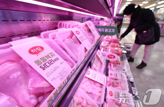 (서울=뉴스1) 구윤성 기자 = 20일 서울의 한 대형마트 매대에 닭고기가 진열돼 있다. 한국은행이 이날 발표한 수입물가지수에 따르면, 지난해 12월 기준 원화 기준 수입 식품 물가는 축산물과 곡물을 중심으로 가파른 상승세를 보였다. 특히 닭고기 수입물가지수는 원화 기준 전년 동월 150.57에서 197.44로 31.1% 급등하며 조사 대상 중 가장 높은 오름폭을 기록했다. 2026.1.20/뉴스1