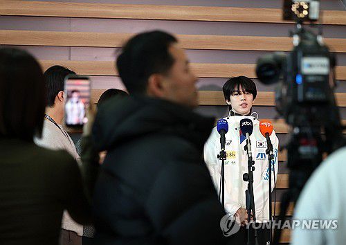 (영종도=연합뉴스) 이지은 기자 = 피겨 스케이팅 대표팀의 차준환이 중국 베이징에서 열리는 4대륙선수권대회에 출전하기 위해 20일 인천국제공항을 통해 출국하기 전 취재진과 인터뷰를 하고 있다. 2026.1.20
