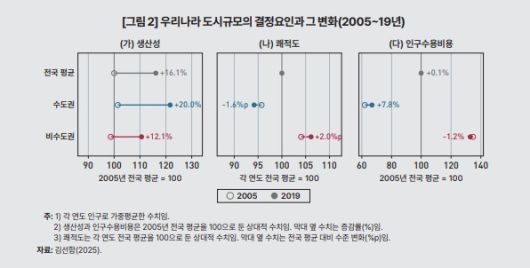 지역에 대한 정부 투자가 생산성 향상으로 이어지지 않는다면 그 효과가 제한적일 것이라는 취지다. 특히 소수의 비수도권 대도시에 집중해 민간 경제를 활성화해야 '수도권 집중문제를 해결할 수 있다'는 해법도 제시됐다.