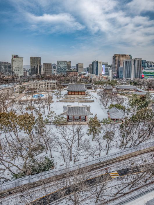 19일 새벽 1cm 가량의 눈이 내리고 난 후의 서울 중구 덕수궁의 모습. /박상훈 기자 |