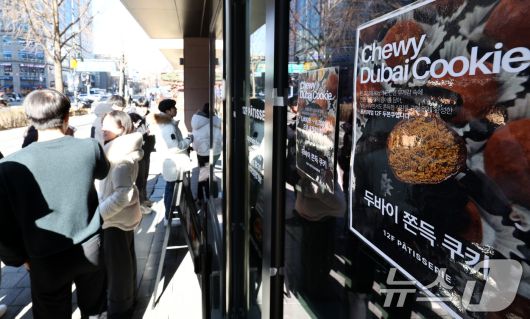 (서울=뉴스1) 최지환 기자 = '두바이 쫀득 쿠키(두쫀쿠)' 열풍이 계속되는 20일 오후 서울 종로구 한 제과점에서 시민들이 두쫀쿠를 구매하기 위해 줄을 서 있다. 2026.1.20/뉴스1