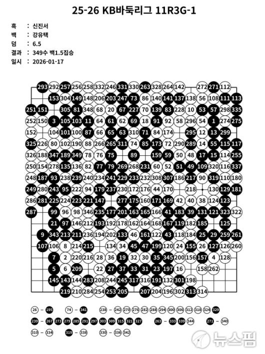한옥마을 전주의 5지명 강유택 9단은 마한의 심장 영암 1지명 신진서 9단을 꺾는 대이변이 연출됐다. 이 패배로 신진서 9단의 연승 행진은 9연승에서 멈췄다.
