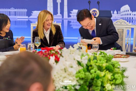 [서울=뉴스핌] 이재명 대통령이 지난 19일 청와대에서 조르자 멜로니 이탈리아 총리와 오찬을 하고 있다. [사진=청와대] 2026.01.20 photo@newspim.com