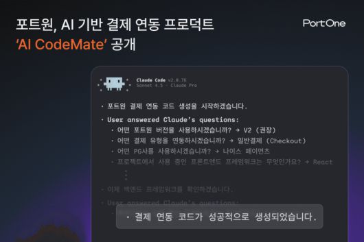 한지환 포트원 프로덕트 오너(PO)는 "그동안 결제 인프라의 DX가 문서를 보기 좋게 만드는 것에 머물렀다면, AI CodeMate는 문서를 읽을 필요 자체가 없게 만드는 혁신"이라며 "개발 현장의 페인 포인트를 빠르고 정확하게 해결하는 기술을 통해 기업들의 비즈니스 확장을 돕겠다"고 말했다.