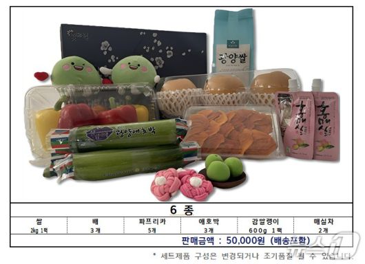 이번 선물세트는 광양에서 생산한 쌀, 배, 파프리카, 애호박, 감말랭이, 매실차 등 6개 품목으로 구성됐으며, 배송비 포함 5만 원에 판매된다.