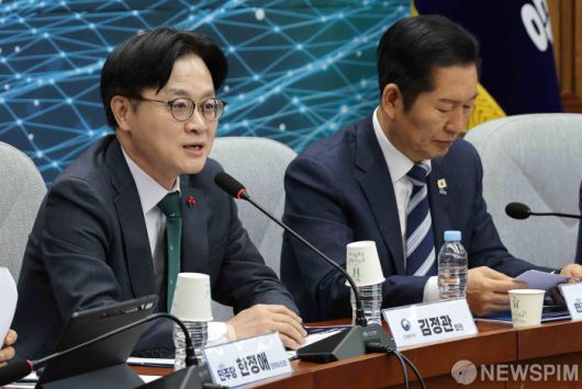 [서울=뉴스핌] 윤창빈 기자 = 김정관 산업통상부 장관이 20일 서울 여의도 국회에서 열린 AX 발전을 위한 정책간담회에서 모두발언을 하고 있다. 2026.01.20 pangbin@newspim.com