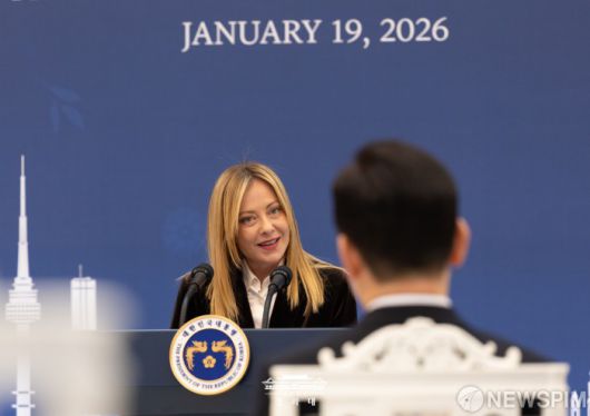 [서울=뉴스핌] 조르자 멜로니 이탈리아 총리가 지난 19일 청와대에서 열린 공식 환영 오찬에서 인사말을 하고 있다. [사진=청와대] 2026.01.20 photo@newspim.com |