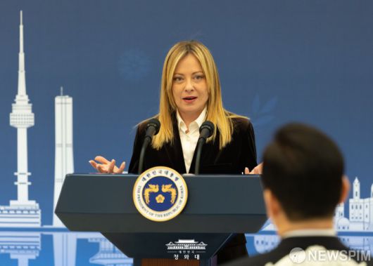 감사의 인사 전하는 조르자 멜로니 이탈리아 총리