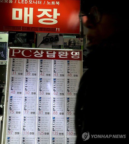 (서울=연합뉴스) 류영석 기자 = PC 부품인 D램 가격이 폭등하며 PC 수요가 줄어드는 가운데 20일 서울 용산구 선인상가의 한 PC 매장 모습.