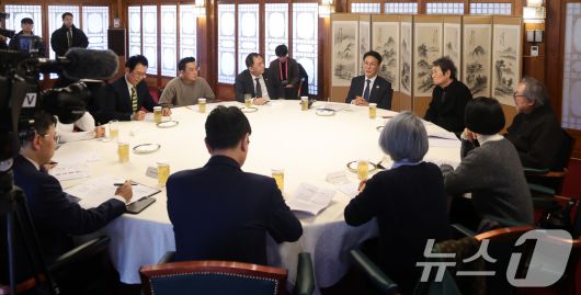 (서울=뉴스1) 청사사진기자단 = 김민석 국무총리가 20일 서울 종로구 삼청동 총리공관에서 연극인들과 간담회를 하고 있다. 2026.1.20/뉴스1seiyu@news1.krCopyright ⓒ 뉴스1. All rights reserved. 무단 전재 및 재배포, AI학습 이용 금지.