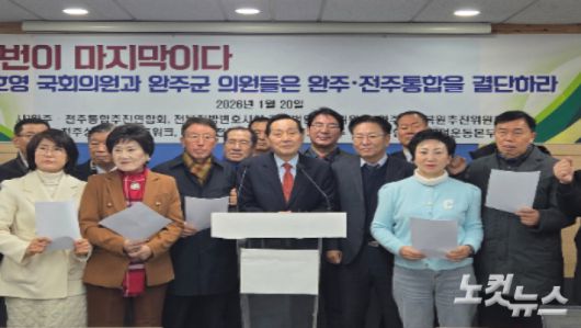 그러면서 "안호영 의원이 통합을 선언하고 적극적으로 추진한다면 180만 전북도민과 함께 시민단체들은 크게 환호할 것"이라며 군의원들을 향해서도 "행정통합 대세에 맞춰 완주 발전과 후손 미래를 위한 대승적 결단을 내려달라"고 촉구했다.