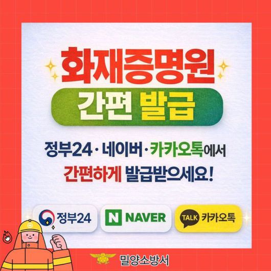 [밀양=뉴시스] 화재증명원 온라인 발급 포스터. (사진= 밀양소방서 제공) 2026.01.20. photo@newsis.com *재판매 및 DB 금지 |