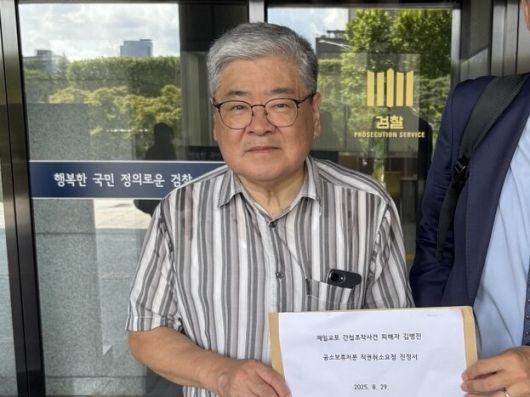 2025년 8월29일 서울 서초구 대검찰청 앞에서 ‘재일교포 간첩조작사건’ 공소보류처분을 직권으로 취소해달라는 진정서를 들고 있는 김병진씨. 최정규 변호사 제공 |