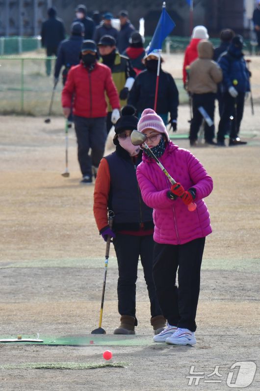 (포항=뉴스1) 최창호 기자 = 일년 가운데 가장 춥다는 대한(大寒) 인 20일 경북 포항시 남구 해도동 형산강체육공원 파크 골프장에서 시민들이 운동을 하고 있다. 2026.1.20/뉴스1