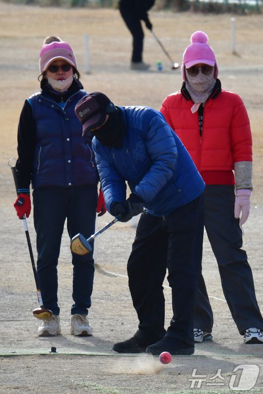 (포항=뉴스1) 최창호 기자 = 일년 가운데 가장 춥다는 대한(大寒) 인 20일 경북 포항시 남구 해도동 형산강체육공원 파크 골프장에서 시민들이 운동을 하고 있다. 2026.1.20/뉴스1