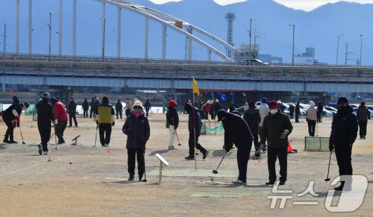 (포항=뉴스1) 최창호 기자 = 일년 가운데 가장 춥다는 대한(大寒) 인 20일 경북 포항시 남구 해도동 형산강체육공원 파크 골프장에서 시민들이 운동을 하고 있다. 2026.1.20/뉴스1