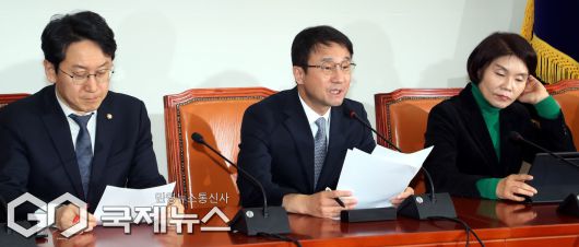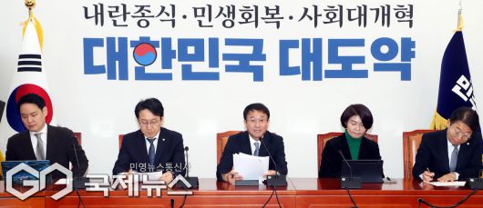 (서울=국제뉴스) 한병도 더불어민주당 원내대표가 20일 오전 서울 여의도 국회에서 열린 원내대책회의에서 발언을 하고 있다./사진=이용우 기자