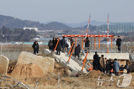 (무안=뉴스1) 김태성 기자 = 12·29 여객기 참사 진상규명을 위한 국정조사 특별위원회(위원장 이양수) 현장조사단이 20일 전남 무안공항 사고현장을 방문해 유가족 등과 함께 현장조사를 하고 있다. 2026.1.20/뉴스1
