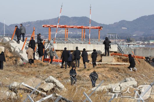(무안=뉴스1) 김태성 기자 = 12·29 여객기 참사 진상규명을 위한 국정조사 특별위원회(위원장 이양수) 현장조사단이 20일 전남 무안공항 사고현장을 방문해 유가족 등과 함께 현장조사를 하고 있다. 2026.1.20/뉴스1