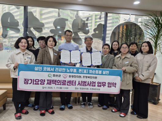 전남 화순군(군수 구복규)은 지난 19일 통합돌봄사업의 의료 공백 해소를 위해 원광한의원(원장 김진원), 조영복한의원(원장 조영복)과 '장기요양 재택의료센터 시범사업' 추진을 위한 업무협약(MOU)을 체결했다.