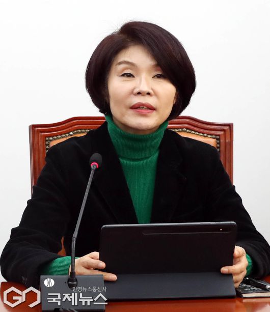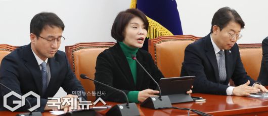 (서울=국제뉴스) 한정애 더불어민주당 정책위의장이 20일 오전 서울 여의도 국회에서 열린 원내대책회의에서 발언하고 있다./사진=이용우 기자