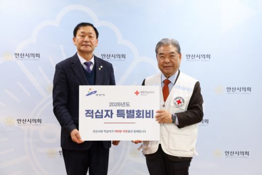 [안산=뉴스핌] 박승봉 기자 = 경기 안산시의회는 '2026년 적십자 특별회비 전달식'을 갖고 대한적십자사 경기도지사에 특별회비를 전달했다고 20일 밝혔다.