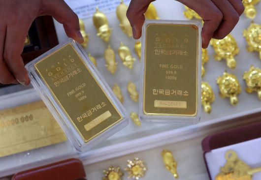 20일 오후 서울 종로구 한국금거래소에서 직원이 골드바를 내보이고 있다. 뉴시스 |