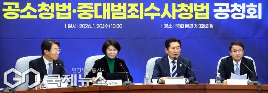 (서울=국제뉴스) 정청래 더불어민주당 대표가 20일 오전 서울 여의도 국회에서 열린 '공소청법, 중대범죄수사청법 공청회'에서 발언을 하고 있다./사진=이용우 기자