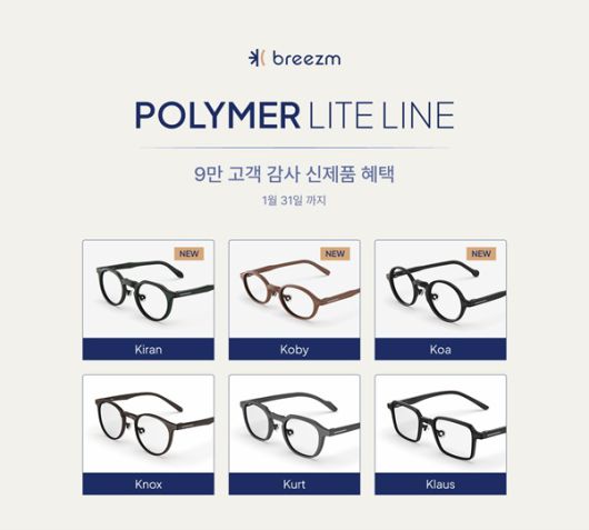 퍼스널 아이웨어 브랜드 브리즘(Breezm)이 12월까지 한정 운영하던 '폴리머 라이트(Polymer Lite)' 출시 기념 프로그램을 1월까지 연장한다고 신규 디자인 3종을 추가로 선보인다.