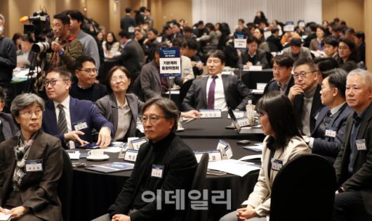 [이데일리 김태형 기자] 20일 서울 중구 코리아나호텔에서 열린 ‘제6차 과학기술기본계획’ 및 ‘제2차 국가연구개발 중장기 투자전략’ 수립 착수회의에서 위원들이 배경훈 부총리 겸 과기정통부 장관의 인사말을 경청하고 있다.