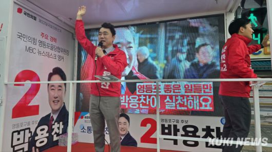 박용찬 국민의힘 영등포을 당협위원장이 지난 2024년 4월 2일 총선을 앞두고 유세활동을 하고있다. 임현범 기자 |