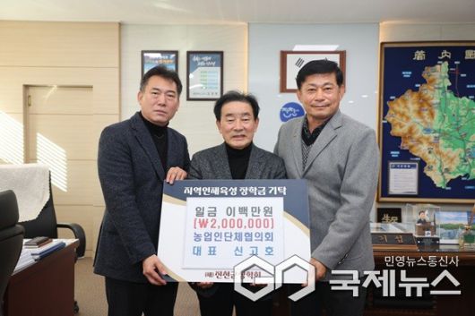 (진천=국제뉴스) 이재기 기자 = 충북 진천군농업인단체협의회(회장 신고호)와 부자농원(대표 이호명)은 새해를 맞아 20일 (재)진천군장학회(이사장 송기섭)를 찾아 장학금을 각 200만 원, 1000만 원을 전달했다.