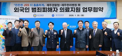 제주경찰청과 제주한라의료재단은 20일 제주경찰청에서 건강보험 미가입 외국인 범죄피해자에 대한 의료 지원을 위한 업무협약을 체결했다.