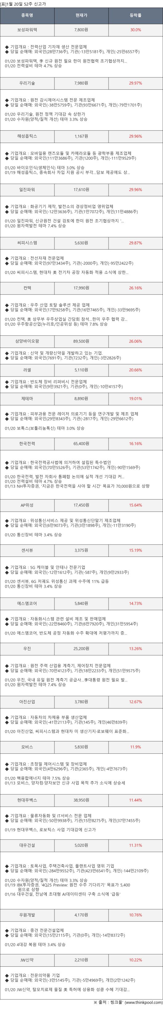 ※ 관련 종목: 보성파워텍, 우리기술, 해성옵틱스, 일진파워, 씨피시스템, 컨텍, 삼양바이오팜, 러셀, 제테마, 한국전력, AP위성, 센서뷰, 에스엠코어, 우진, 아진산업, 모비스, 현대무벡스, 대우건설, 우원개발, JW신약