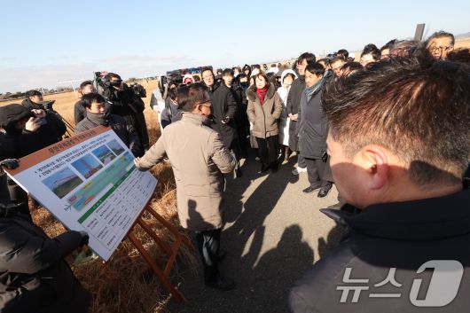 (무안=뉴스1) 박지현 기자 = 20일 무안국제공항에서 열린 12·29 여객기 참사 진상규명을 위한 국정조사 특별위원회 현장조사에서 현장조사단과 유가족이 공항공사의 설명을 듣기 위해 모여 있다. 2026.1.20/뉴스1warm@news1.krCopyright ⓒ 뉴스1. All rights reserved. 무단 전재 및 재배포, AI학습 이용 금지.