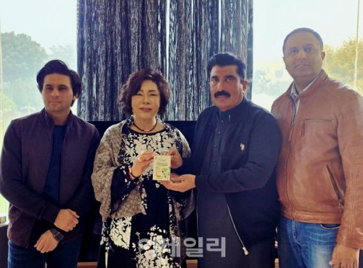 이영옥 일품에스피 회장(왼쪽에서 두 번째)이 고리 코스메틱스 관계자들과 ‘슈퍼릴라 들깨 식물성 오메가3’ 납품 계약을 체결하고 기념사진을 찍고 있다. (사진=일품에스피) |