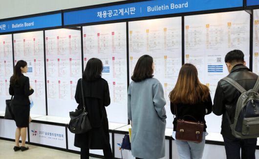 청년들이 채용공고 게시판을 살펴보고 있다. 연합뉴스 |