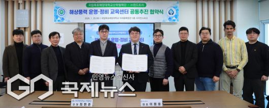 [김옥빈 기자] (부산=국제뉴스) 김옥빈 기자 = 국립목포해양대학교 산학협력단은 20일 오후, 국립목포해양대학교 미래융복합관 사이언스파크에서 윈드트리와 '해상풍력 운영·정비 교육센터 공동추진'을 위한 업무협약(MOU)을 체결했다.