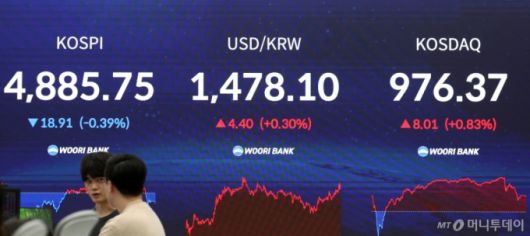 20일 코스피는 전 거래일 대비 18.91포인트(0.39%) 내린 4885.75에 거래를 마쳤다. 올해 첫 하락 마감이다. 코스피는 이날 종일 오르내리며 변동성 장세를 보였다.