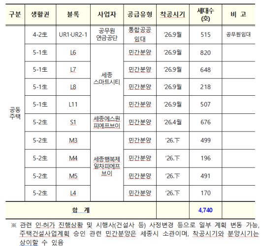 [윤국열 기자] 올해 세종시 행복도시내 총 4740호의 공동주택이 공급될 전망이다.