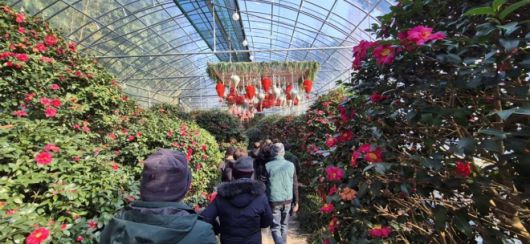 전남 신안군 압해읍에서 열린 ‘섬 겨울꽃 축제’ 현장에서 관람객들이 애기동백꽃 길을 걷고 있다. (신안군 제공) |