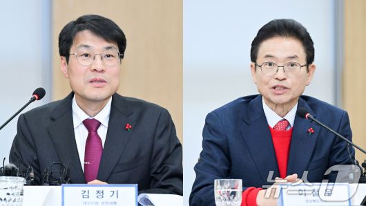 (대구=뉴스1) 공정식 기자 = 이철우 경북지사(오른쪽)와 김정기 대구시장 권한대행(행정부시장)이 20일 오후 경북 안동시 경북도청에서 열린 대구·경북 행정통합 추진협의 회의에서 발언하고 있다. (대구시 제공. 재판매 및 DB 금지) 2026.1.20/뉴스1