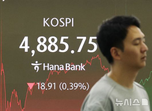 장은 종일 극심한 변동성을 보였다. 코스피는 4900.28에 출발한 뒤 장 초반 4923.53까지 오르며 신고가를 경신했다가 차익실현 매물이 쏟아지며 하락 전환했다. 정오 무렵 다시 상승세로 돌아서며 오후 2시30분께 장중 최고치 4935.48을 기록했지만 막판 매도 압력이 강화되며 상승분을 모두 내주고 마감했다.