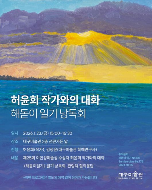 대구미술관, 허윤희 작가와의 대화:해돋이 일기 낭독회 안내 포스터.사진=대구시(포인트경제) |