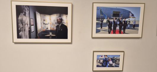 청주 아트센터 올리브에서 20~25일 열리는 ‘독립군의 후예 고려인이 사는 땅, 중앙아시아’ 사진전. 전시에선 홍범도 장군 유해 봉환 장면 등 고려인과 중앙아시아를 두루 만날 수 있다. 오윤주 기자 |