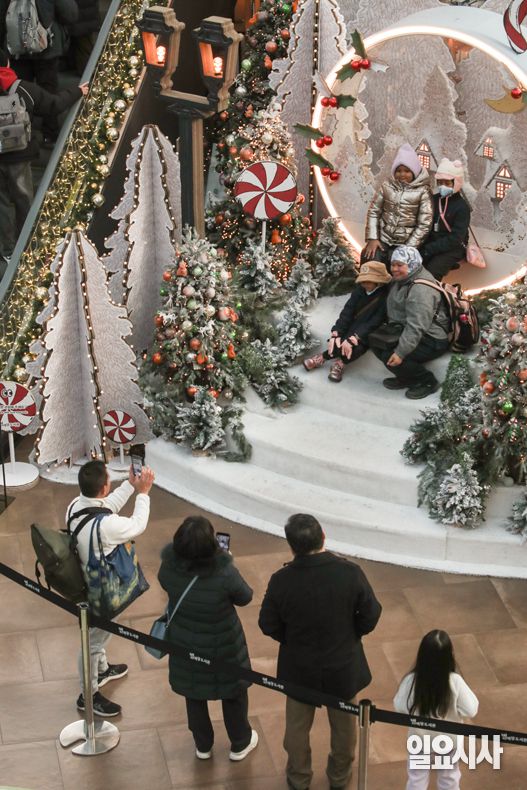 올겨울 가장 강한 한파가 몰아치고 있는 가운데 20일 오후 서울 강남구 코엑스몰 별마당도서관을 찾은 관광객들이 사진촬영을 하며 시간을 보내고 있다.