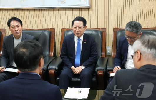 (무안=뉴스1) 전원 기자 = 김영록 전남도지사는 20일 오후 2시 광주송정역 귀빈실에서 현대자동차 임원진을 면담하고 광주․전남 내 수전해 플랜트 구축, 서남권 피지컬 AI 전진기지 조성 등 현대차의 투자 유치를 위해 협의했다.(전남도 제공. 재판매 및 DB금지) 2026.1.20/뉴스1