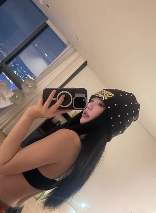 공개된 사진 속 닝닝은 방 안에서 거울을 활용해 셀카를 찍으며 자유분방한 매력을 뽐냈다. 섹시한 뒤태와 탄탄한 몸매가 돋보였으며, 화려한 스터드 장식의 블랙 비니와 심플한 블랙 브라톱, 로우라이즈 데님 팬츠를 매치해 군살 없는 허리라인을 강조했다.